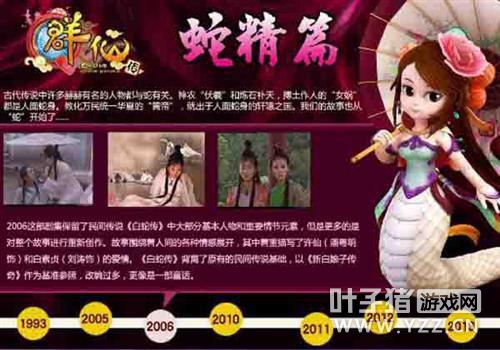 【全新白蛇传开创新视觉】 随着激活码的发放,同时《Q群仙传online》官方网站也刊登了最新资料片“蛇精篇”的专题页,玩家只需访问游戏官方即可通晓古今,了解《白蛇传》一些不为人知的秘密,与《Q群仙传online》中的特色传说故事。
